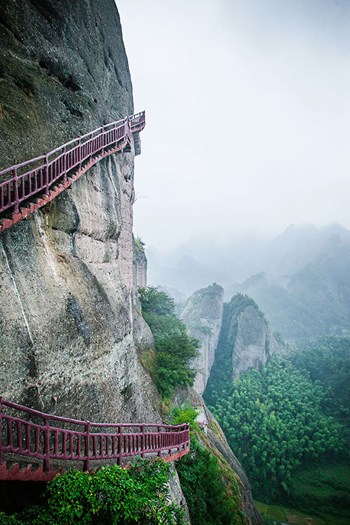 After bidding my “fans” goodbye, we climb hundreds of stairs to reach Langshan’s peak. The mist and rain make the air feel dewy sweet and a peacefulness prevails in this remote place.