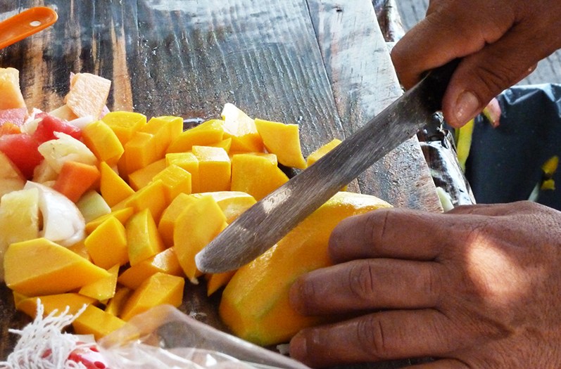 As a palate cleanser, we stopped at a street cart where owner Ernesto expertly chopped up sweet mangos, papaya, apples and watermelon and scooped the resulting mixed salads into plastic take-away bags, complete with spoon.