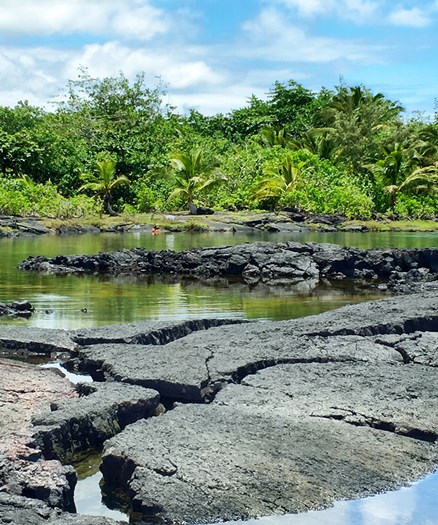 The antidote for our off-road adventure was our stop at the thermal heated tidal pools that attract in-the-know swimmers and snorkelers to Kapoho Kai, an unmarked set of volcanic pools set backside of the Wai ‘Opae subdivision of permanent homes and vacation rentals. If you know just where to enter you’ll go where few do. The mixture of heated freshwater mixes with the seawater to attract tropical fish to populate these pools — some 10-metres deep — just like an aquarium.