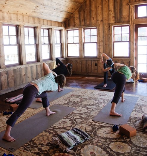 Left:Skiers would sell their soul for a chance to ride this Devil’s Thumb. Right: Yoga classes are all part of the package offered at Devils Thumb.
